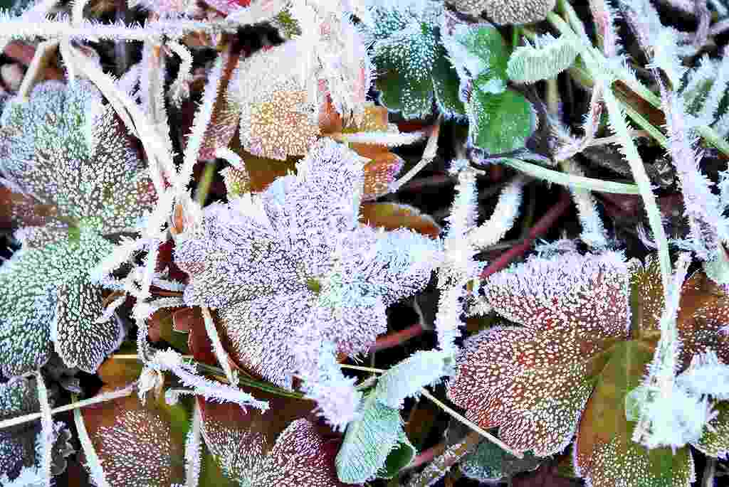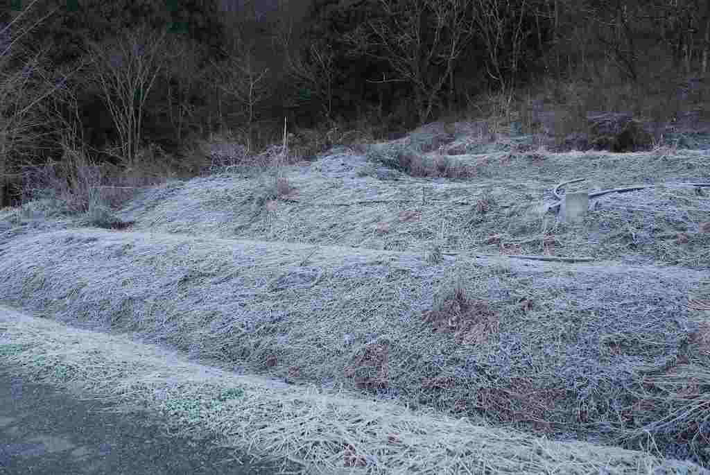 今朝は冷え込みが強く霜で真っ白です
